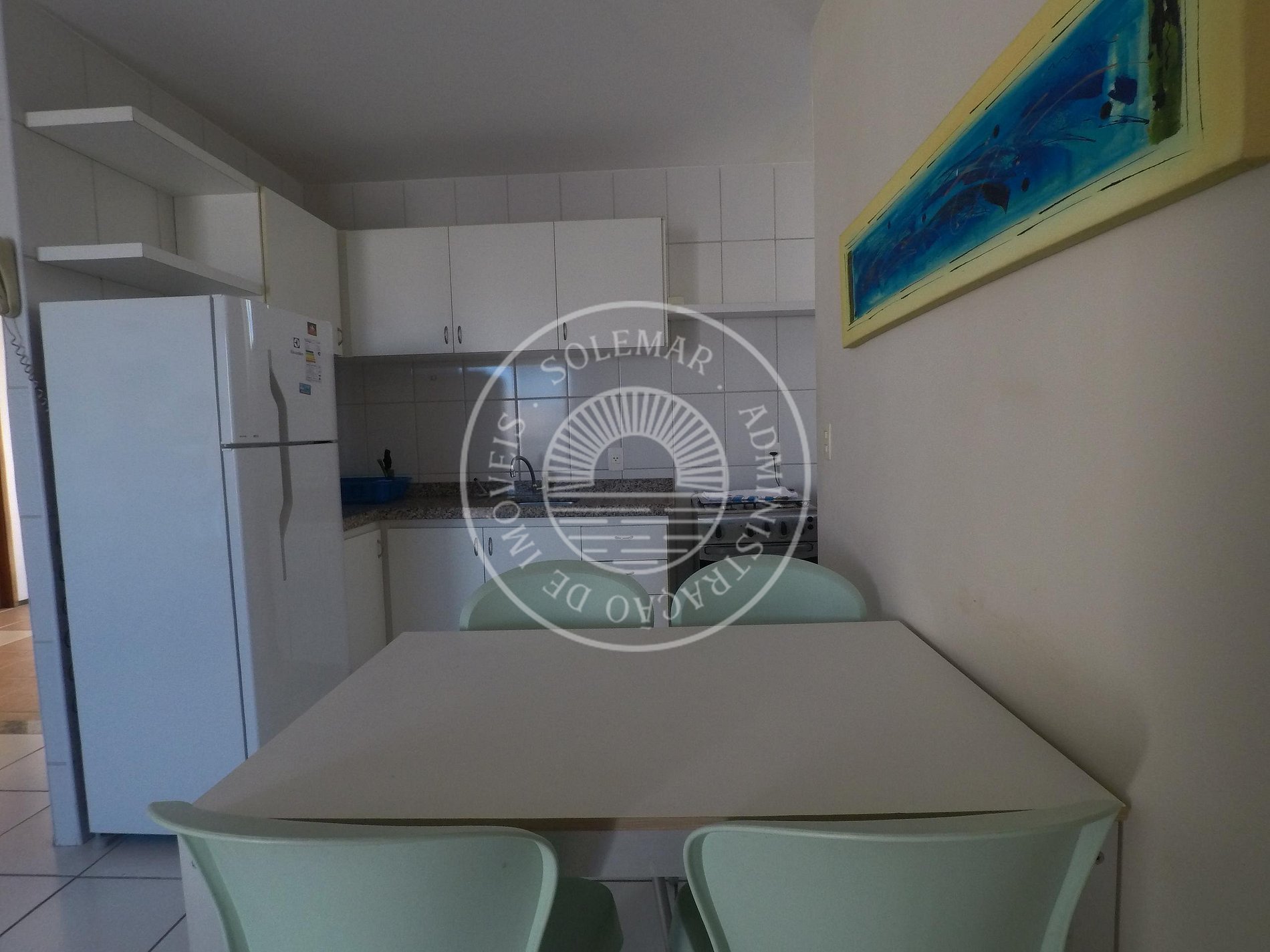 ventiladores. A cozinha possui geladeira, fogão, além de outros itens